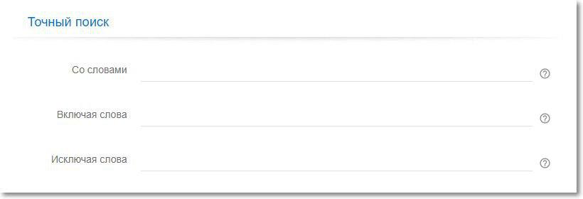 В разделе Точный поиск в блоках с текстовыми полями увеличили до 2000 число допустимых символов для каждого поля. Ранее поля “Со словами” и “Включая слова” содержали по 300, а поле “Исключая слова” — 1000 символов.