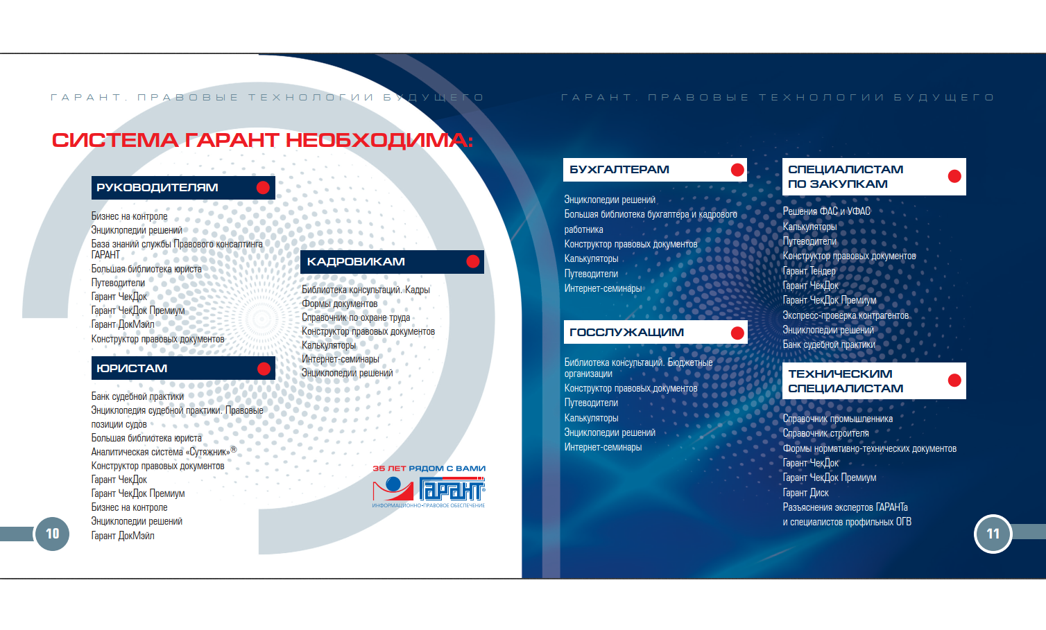 Уверенность в каждом решении» вы найдете информацию об основных продуктах и услугах компании «Гарант». С его помощью вы сможете выбрать именно то, что вам нужно для быстрого и легкого решения профессиональных вопросов.