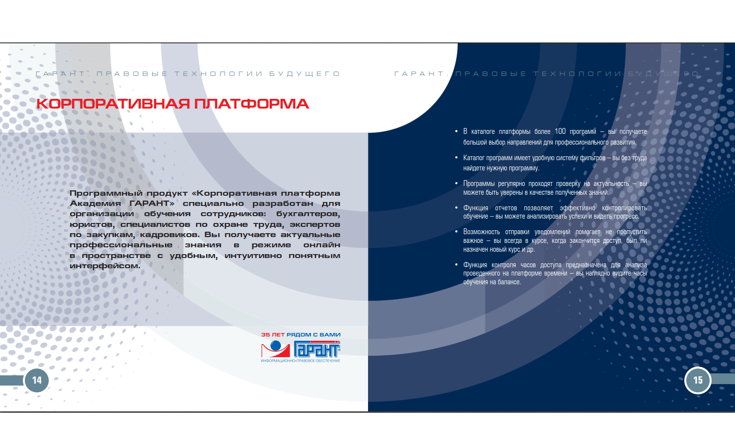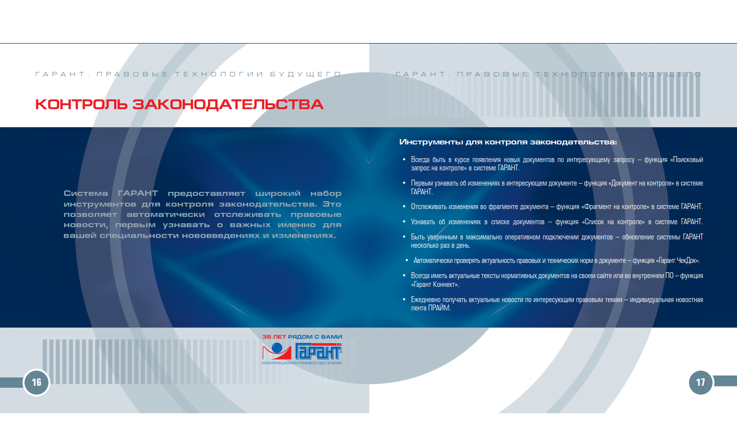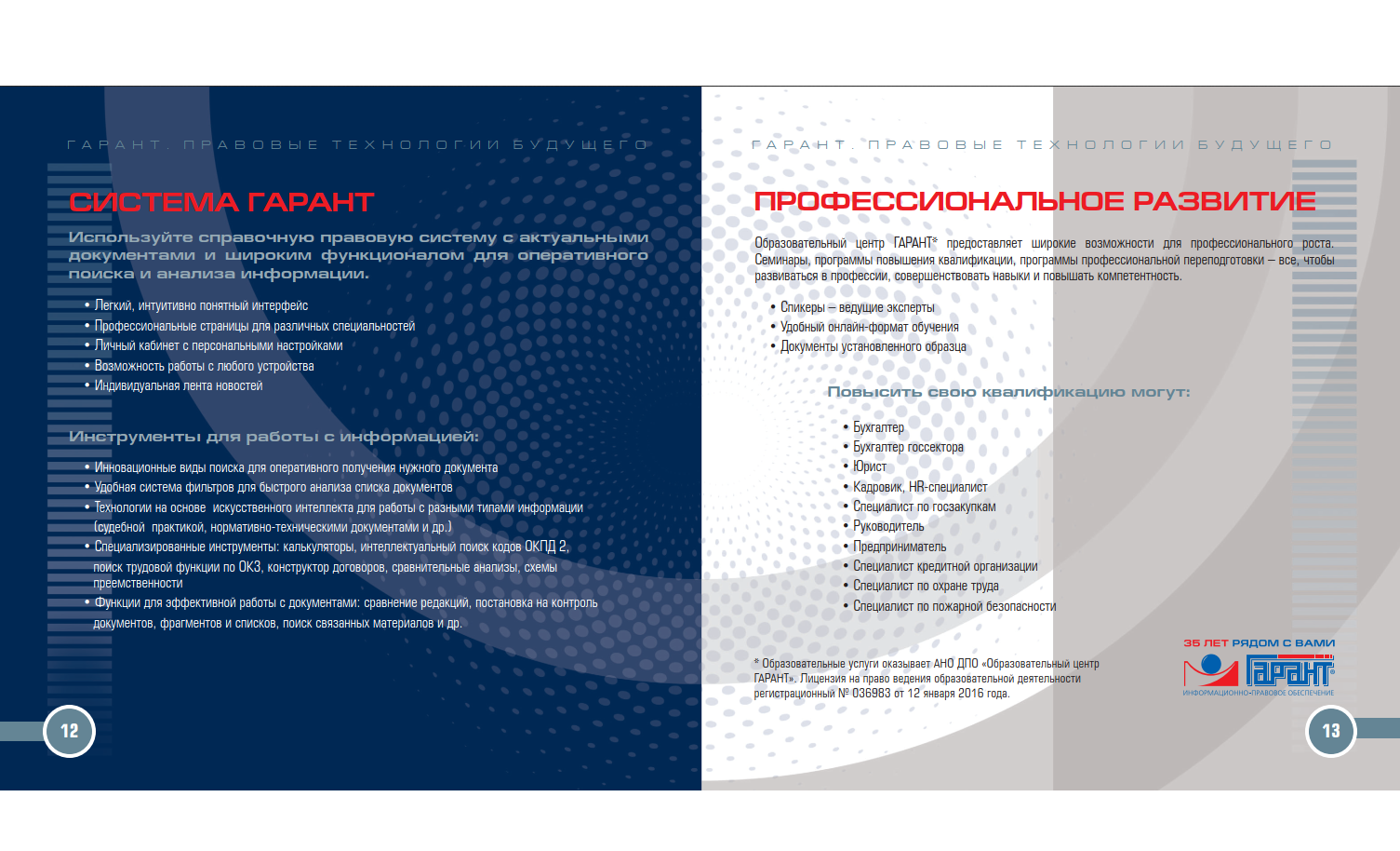 ГАРАНТ – больше чем справочная правовая система. Профессионалы, работающие с документами, знают: чтобы добиться успеха, нужно быть уверенным в каждом своем решении. А для этого необходимо обладать всей полнотой информации и профессиональной правовой поддержкой.