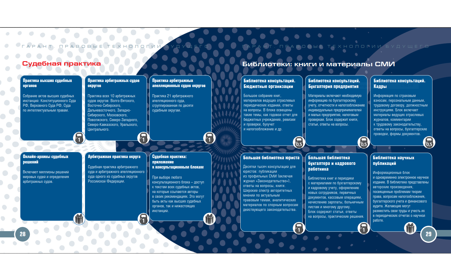 Вы получаете комплексное и взаимосвязанное информационно-правовое обеспечение, которое поможет вам добиться успеха при решении любого вопроса. Информационно-правовое обеспечение ГАРАНТ включает в себя следующие элементы: