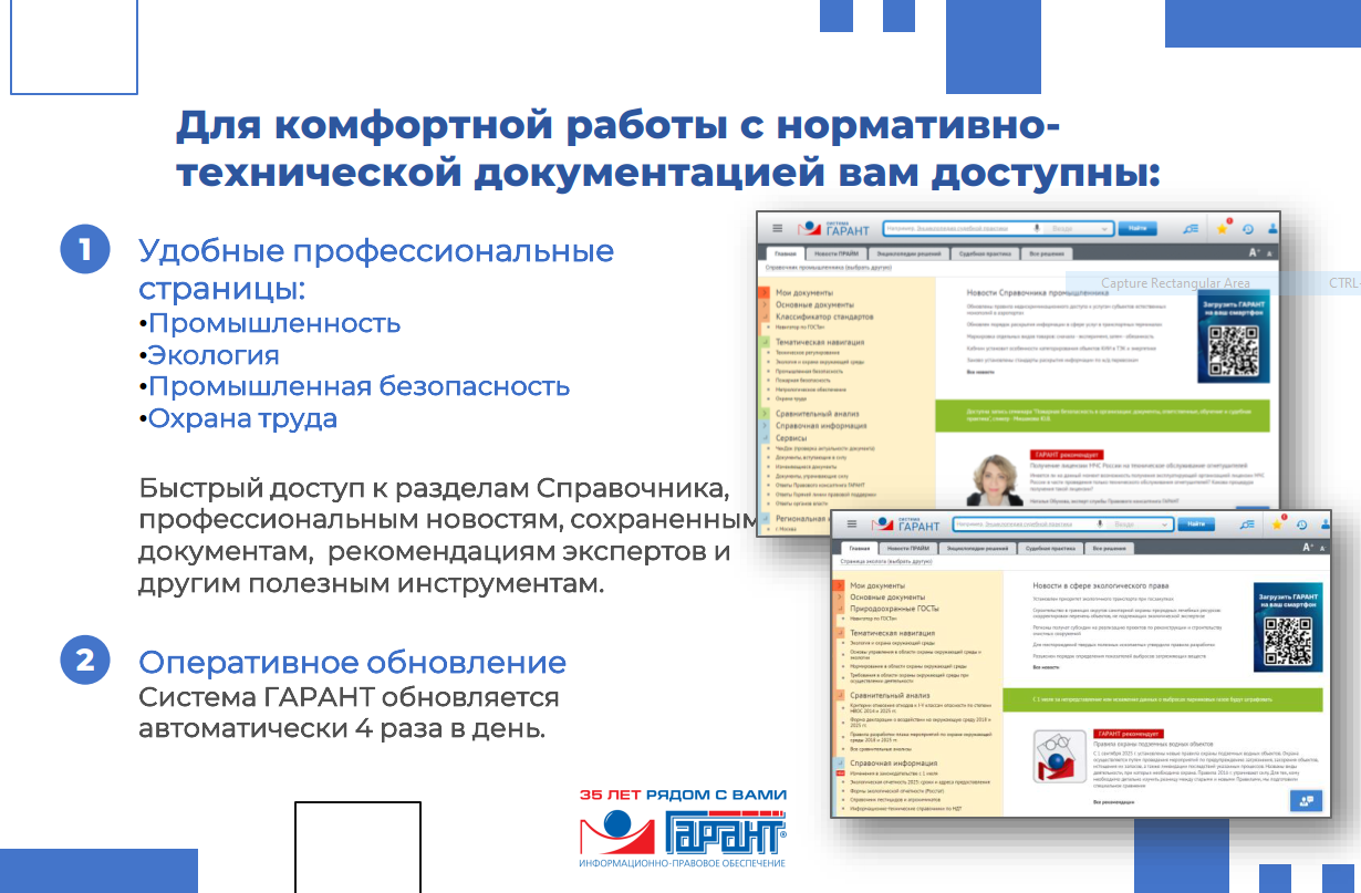 Оперативное обновление и горячая линия экспертной поддержки – высокие стандарты обслуживания клиентов и обновления информации под маркой ГАРАНТ!
