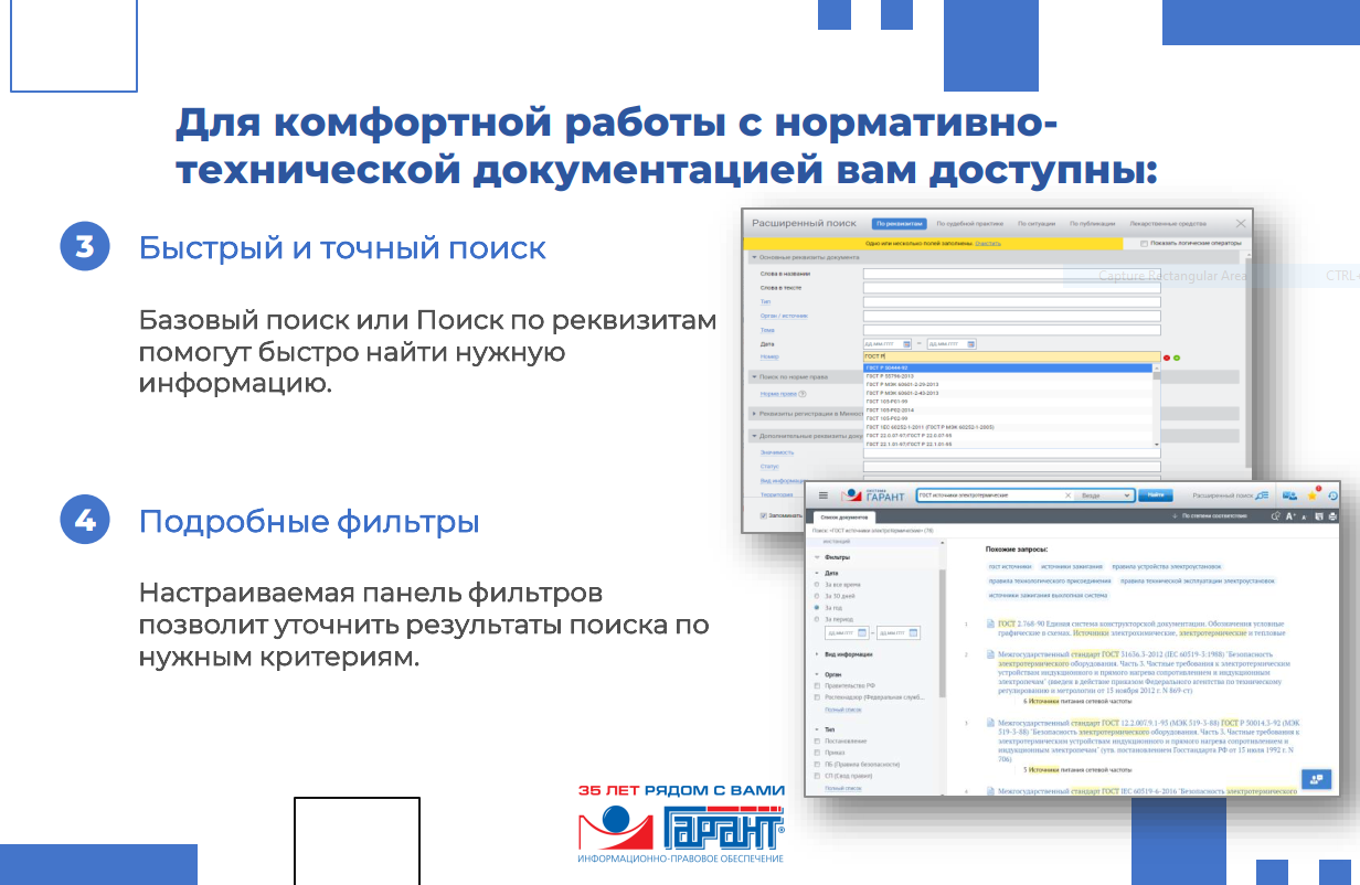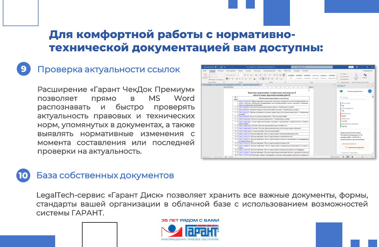 Единое информационно-правовое пространство – ваши нормативно-технические и правовые документы обработаны и взаимосвязаны по единым стандартам качества Системы ГАРАНТ